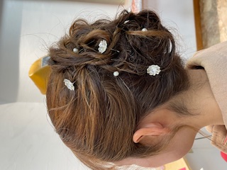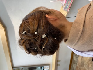 結婚式お呼ばれヘアー☺ 橋本 美香 2025-10-28 (火) ご友人の結婚式に出席されるお客様のヘアセットをさせていただきました(^-^)派手になりすぎず、お洋服に合うようなイメージでさせていただきました★朝の寒い中、早くからありがとうございました!!